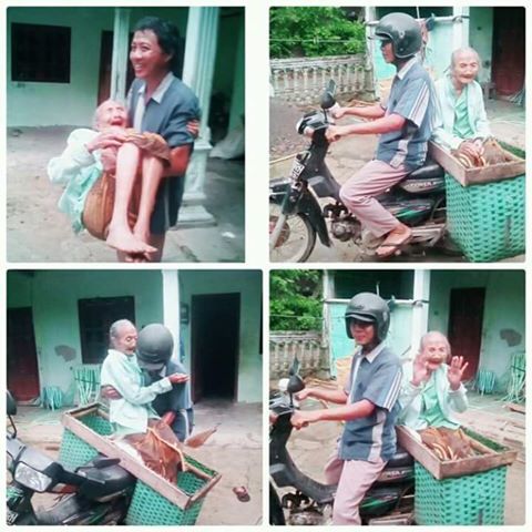 Seperti yang terlihat foto duatas, yang telah dibagikan oleh facebook Windy Manyund. Foto unggahan minggu (15/1) itu memperlihatkan se orang pria yang menggendong ibunya. Sang ibupun juga terlihat sangat bahagia meski dirinya didudukkan di keranjang yang biasa digunakan untuk berdagang.