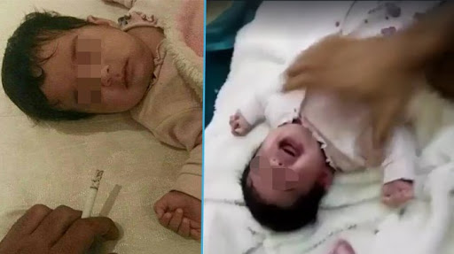 "Video hari ini dari Saudi Arabia yang menunjukkan bayi berumur 1 bulan..Ibunya yang orang Suriah melapor pada polisi jika suaminya selalu menyiksa anak mereka dan kadang mencampur soda pepsi dalam susu anak itu, lalu merekam kejadian tersebut dan mengirim video itu padanya. Ia telah berpisah dengan suaminya dan mengambil bayi itu darinya untuk kemudian disiksa...ia ingin bayi itu kembali padanya"