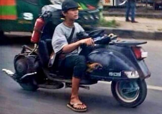 Modifikasi motor memang bukan hal aneh lagi dilakukan orang Indonesia. Tapi kalau yang satu ini apa pernah kamu lihat? Dalam video berdurasi 20 detik ini terlihat pemuda sedang mengendarai vespa dengan setang terbalik!