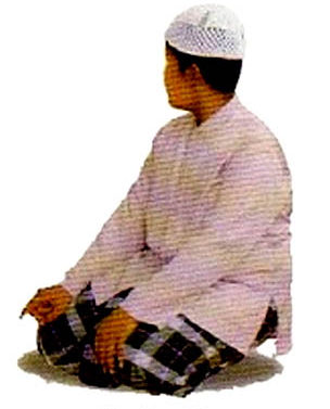 Setelah gerakan sujud, dilanjutkan dengan gerakan duduk di mana pantat dan paha bertumpu pada bagian kaki bawah.
