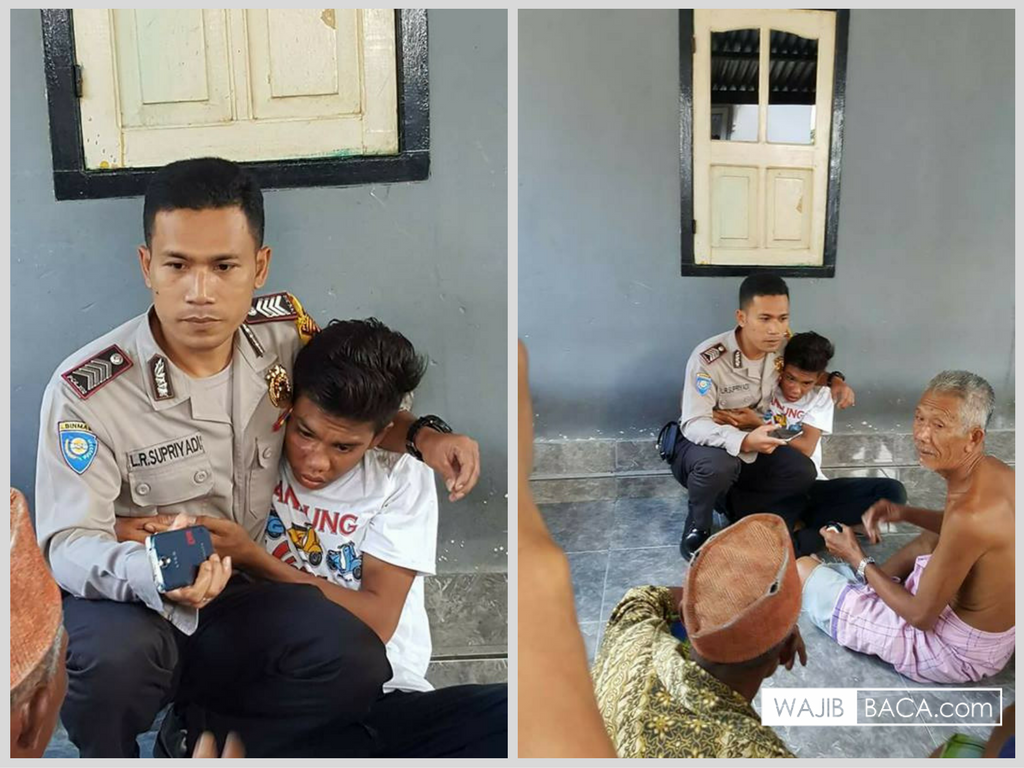 Karena ada seorang polisi yang kemudian menenangkan situasi dan langsung memeluk anak tersebut.