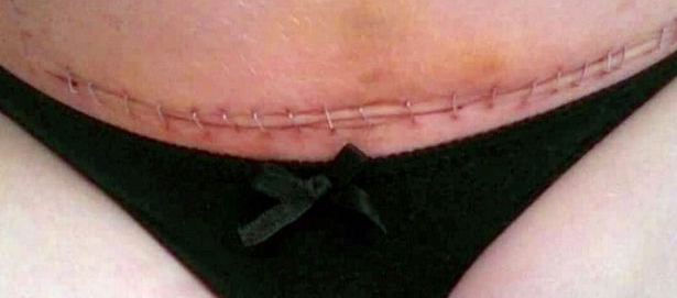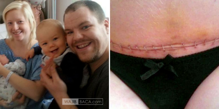 Perempuan bernama Sam Bell ini telah menjalani prosedur rutin. Namun seperti dikutip dari Metro.co.uk melalui Idntimes, (31/1/2016), ketika ia berusaha berdiri, ia merasa seperti celana yang dikenakannya menggelitik dan melekat di perutnya. Ia membuka celananya dan terkejut ketika lukanya terbuka di depan matanya dan ususnya berguling keluar dari bagian perutnya. Ia kemudian berteriak dan suami beserta sang bidan segera masuk ke ruangan.