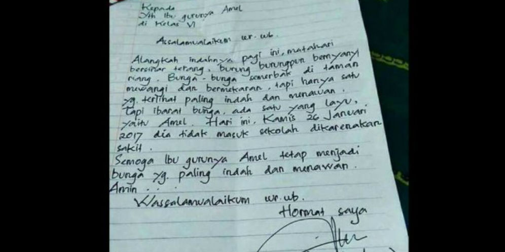 Surat Ayah Amel untuk Ibu Guru Ini Jadi Viral, Ternyata Isinya Bikin Ngakak