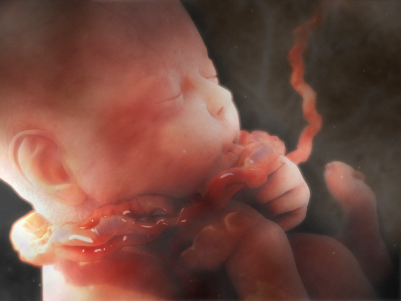 Hal ini ditunjukkan dengan janin yang cenderung menyentuh wajahnya, seperti seorang dewasa memegang kepala ketika stres.
