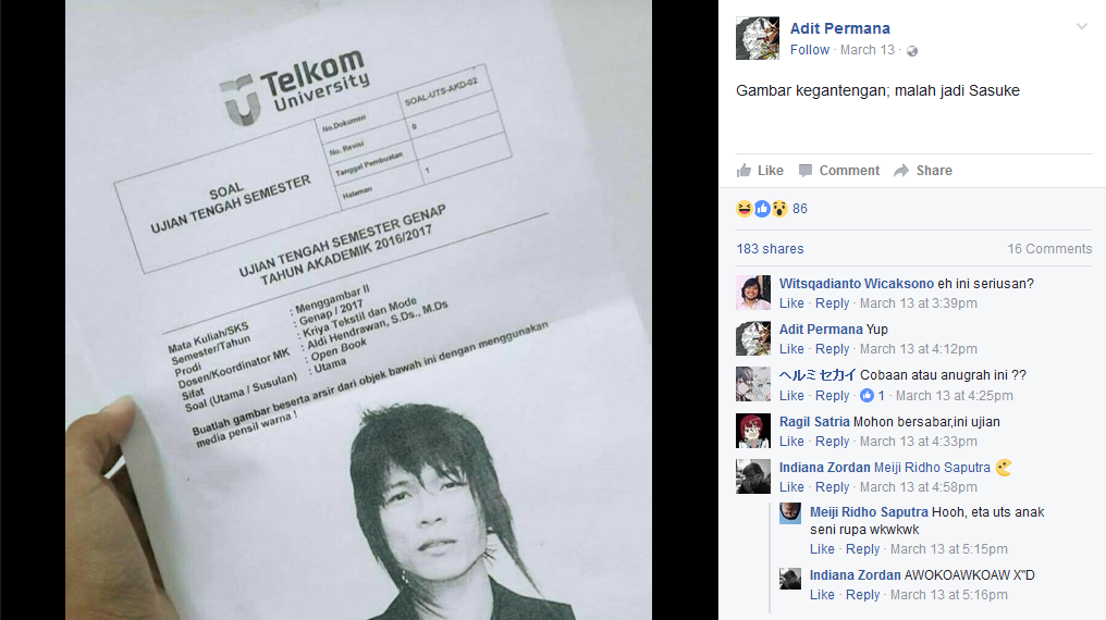 Mata kuliah dari soal itu adalah Menggambar II, dengan program studi Kriya Tekstil dan Mode. Namun yang bikin netizen terheran-heran adalah adanya sosok Andika Kangen Band sebagai bagian dari soal.