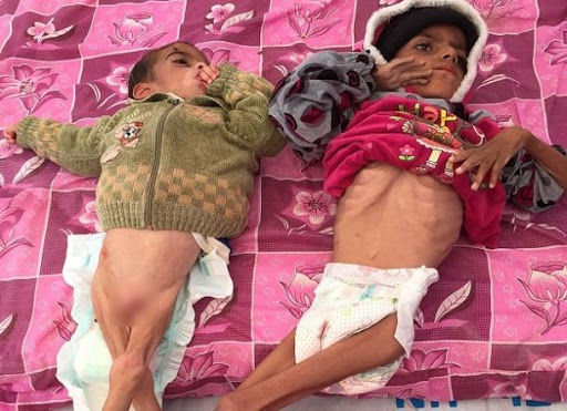 Salah satu anak berusia dua tahun sementara saudaranya berusia sembilan tahun. Walau begitu, karena begit kurus, keduanya tampak seperti di bawah umur. Badan kurusnya tersebut terlihat begitu jelas. Rusuk dan lutur mereka menonjol, serta kaki mereka begitu kurus.