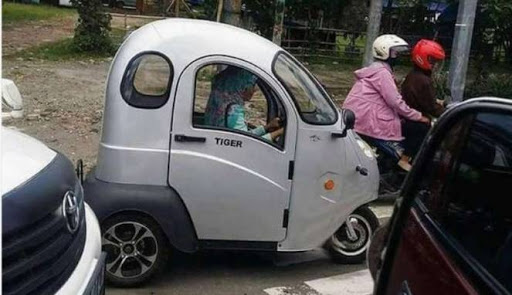 Sepeda motor roda tiga masih viral di internet. Kali ini, bermesin listrik yang dijual Rp 32.500.000 dengan nama Tiger dan bisa membawa dua penumpang, serta satu orang sopir di bagian depan.Motor listrik roda tiga itu viral setelah foto unitnya beredar di internet, ketika sedang dikendarai oleh seorang wanita berkerudung di jalan umum.