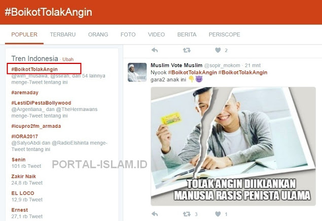 Tagar BoikotTolakAngin Jadi Trend di Twitter, Tolak Angin Tak Perpanjang Kontrak Iklan Ernest