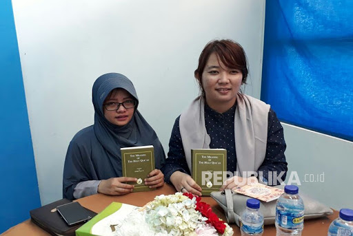 Danalia Permatasari (26 tahun) kanan dan Novita Luciana (25 tahun) kiri, usai bersyahadat di bimbing oleh Dr Zakir Naik, yakin masuk Islam setelah melihat ceramah Zakir Naik, di Youtube.