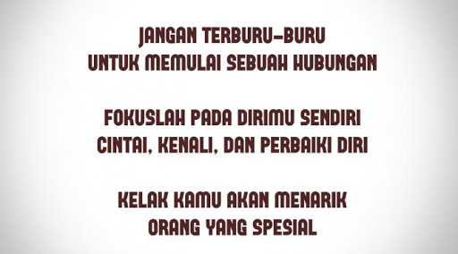 Maka berfokus saja pada perubahan diri menjadi lebih baik, jadikanlah dirimu shaleh dan shalehah, Perihal jodoh biar Allah berikan yang terbaik menurut-Nya.
