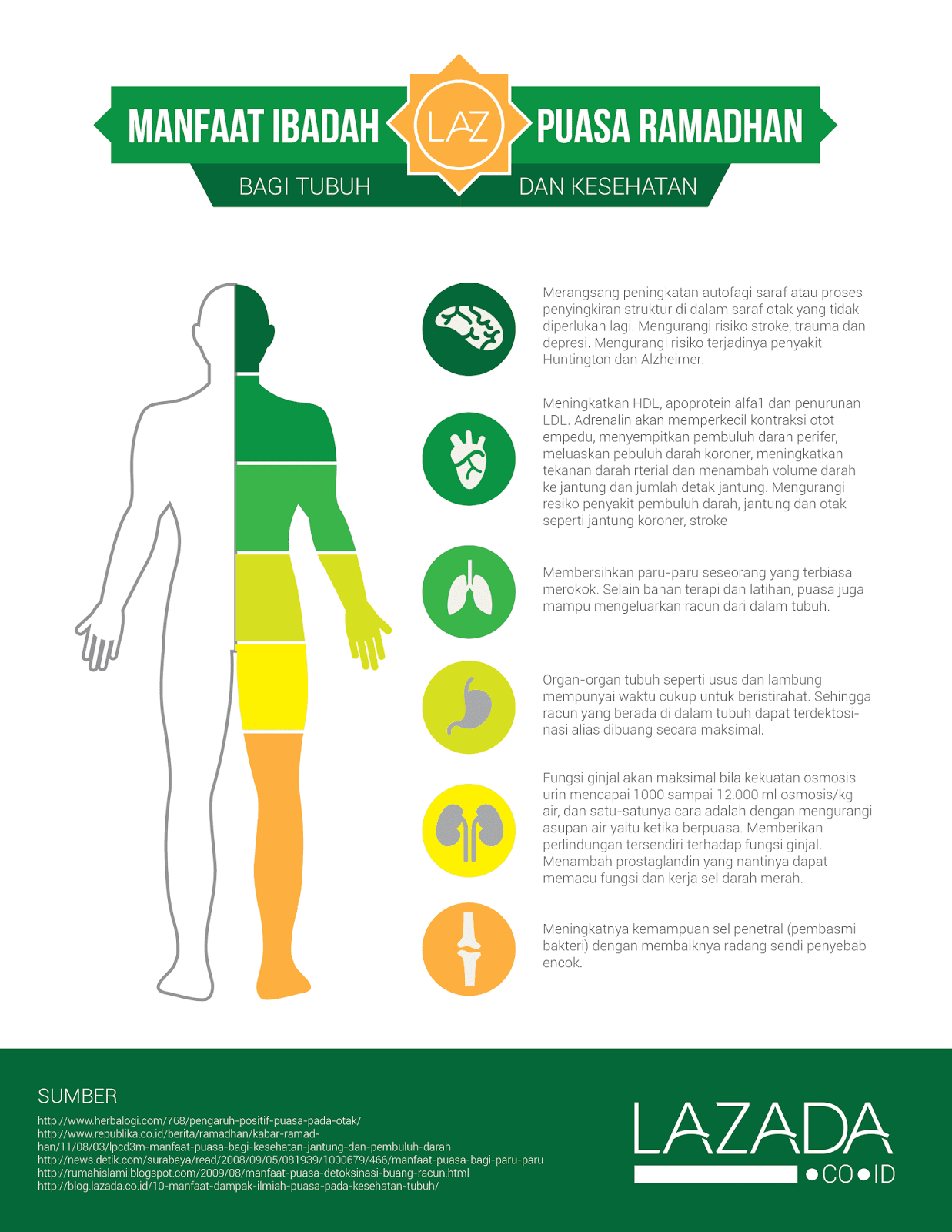 Dengan niat yang kuat dan ikhlas, ibadah puasa dapat kita jalani dengan maksimal sekaligus memberikan manfaat yang maksimal pula bagi diri kita. Selain menjadi ladang pahala bagi umat muslim, berpuasa juga memiliki manfaat yang luar biasa bagi kesehatan tubuh manusia itu sendiri.