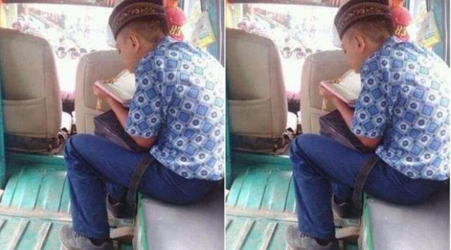 Namun siapa sangka ternyata masih ada anak-anak yang tidak terbawa arus modernisasi dan lebih memilih untuk mengisi waktu luangnya dengan ibadah. Salah satunya adalah apa yang dilakukan oleh seorang bocah yang berseragam SMP dan tengah menaiki mobil angkot.