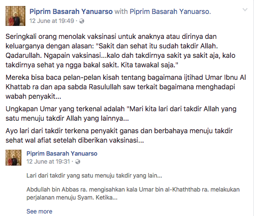 Kekhawatiran Dr Piprim terhadap pentingnya melakukan imunisasi demi mencegah penyakit ganas dan berbahaya kembali ia ungkap dalam akun facebok pribadinya. Pada postingan tersebut, Dokter yang bekerja di RSUPN Cipto Mangunkusumo ini juga menyertakan screen shoot twit dari Oki dan berita dari salah satu media online. Hal ini pun memicu banyak komentar dari netizen dan telah dibagikan lebih dari 3.000 kali.
