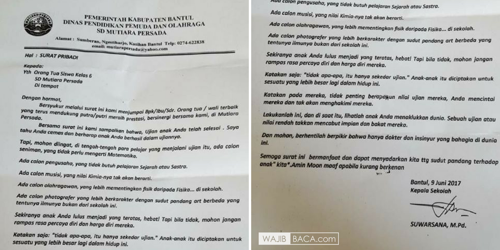 Ini Nilai-Nilai Positif Surat Kepala Sekolah di Bantul yang Menyentuh Menurut Psikolog Anak