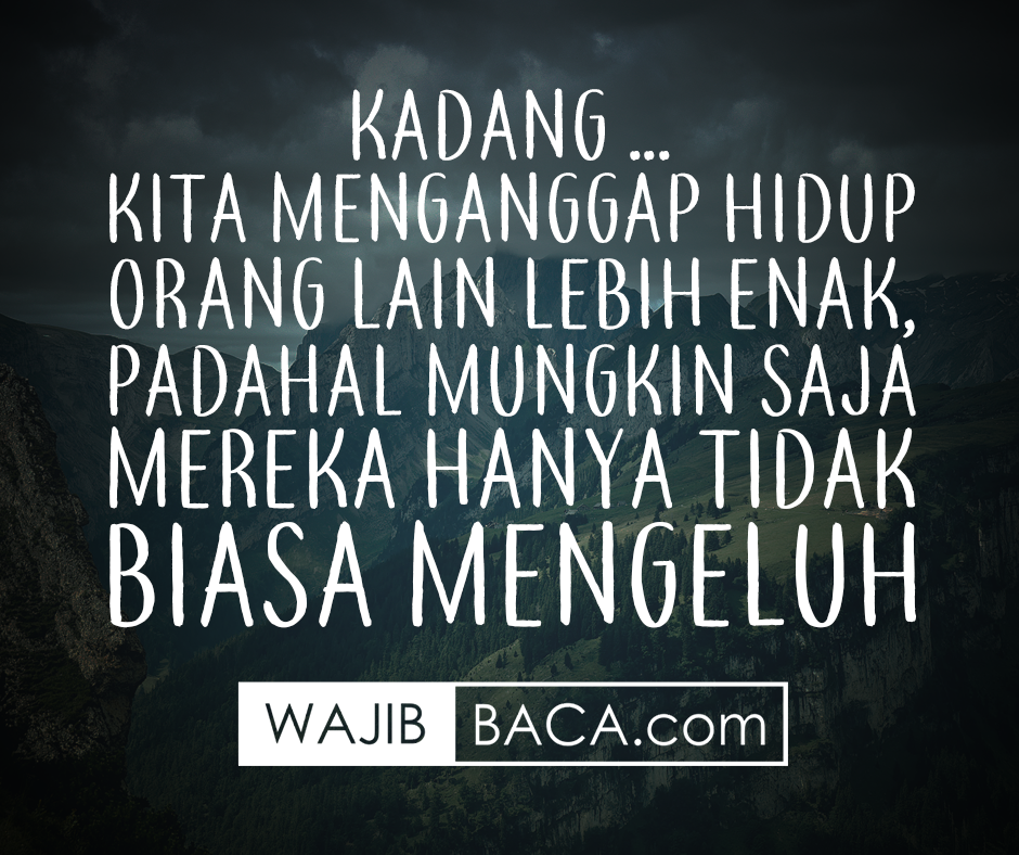 Jangan mengeluhkan keadaan hanya karena kamu melihat orang lain lebih enak hidupnya, karena bisa jadi justru merekalah yang lebih berat hidupnya ketimabang hidupmu.