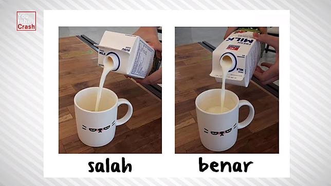 Agar tidak tumpah dan tertuang secara terarah, tuangkan susu kemasan dengan cara seperti gambar diatas.