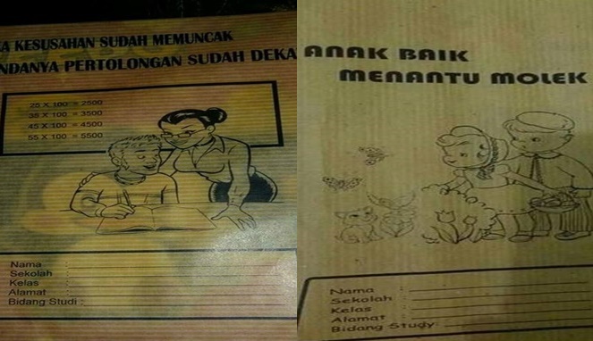 Beberapa waktu yang lalu netizen dihebohkan dengan ditemukannya sebuah sampul buku dengan gambar yang tidak lazim. Ya, sampul berwarna cokelat yang sering kita gunakan saat SD itu memang biasanya berisi kata mutiara dan gambar pelajar, namun tidak dengan yang satu ini. Pasalnya dalam sampul yang ditemukan itu salah seorang netizen itu, yang ada malah gambar yang merujuk pada konten dewasa.