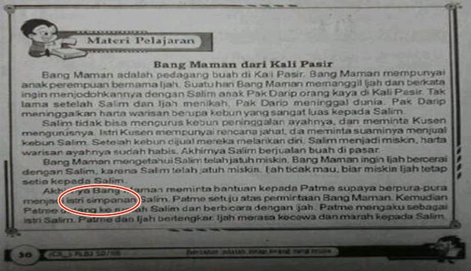 Berbeda dengan yang sebelumnya, kalau yang satu ini kata-katanya yang bermuatan konten dewasa. Secara gambar mungkin semua terlihat biasa, namun jika diperhatikan seksama pasti ada keganjilan yang ditemukan di sana. Jika kata-kata seperti “Rajin pangkal pandai”, “Hemat pangkal kaya” yang biasa tertulis, dalam sampul ini malah bertuliskan “Anak baik menantu molek”.