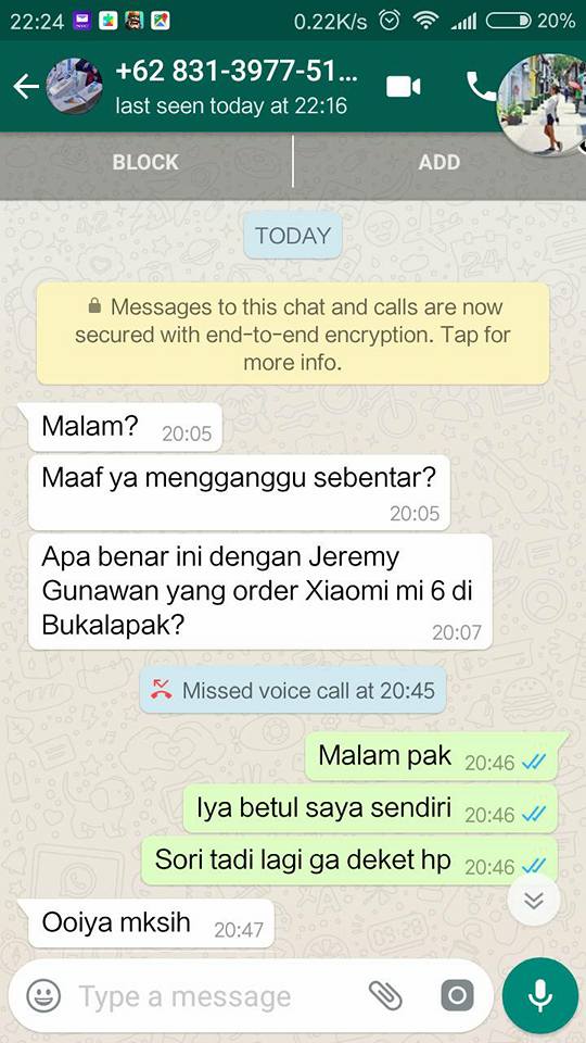 Pada kasus saya, saya hendak beli Xiaomi Mi 6 di seller Hamsa Cell di situs BukaLap*k.