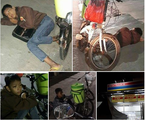 Biasanya Adit berjualan Es dari sore sampai larut malam, makanya Adit sering ketiduran di Jalan, Adit mangkal di samping Indomaret Jl. Kesatriaan 12, Cilincing.