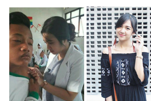 Seperti Dokter yang satu ini, fotonya saat ini sedang viral di medsos karena telah memberi vaksin kepada siswa.