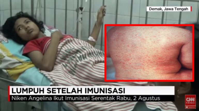 Sejak kemarin, 12 Agustus 2017, santer kabar soal anak lumpuh setelah imunisasi campak dan rubella (MR). Dalam berita yang disiarkan oleh CNN Indonesia, seorang siswi SMP di Demak, Jawa Tengah, jatuh sakit setelah diimunisasi campak dan rubella di sekolahnya.