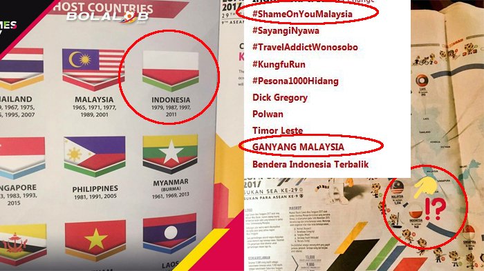 Bagaimana tidak, dalam buku panduan yang dibagikan kepada seluruh negara peserta negara Sea Games 2017, bendera Indonesia dicetak terbalik.