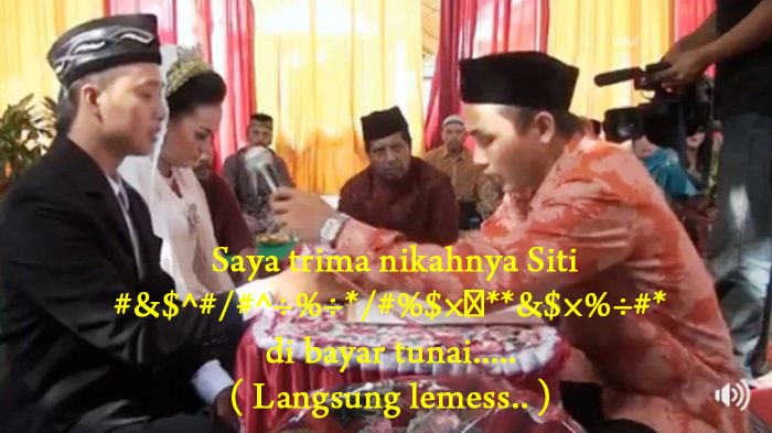 Christian Aditya : Saya trima nikahnya Siti #&$^#/#^÷%÷*/#%$×₩**&$×%÷#*di bayar tunai.....( Langsung lemess.. )