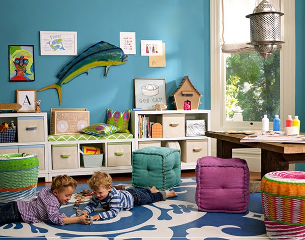 Jika kalian memiliki anak laki-laki sebaiknya beri warna biru untuk pewarnaan dindingnya. Beri jendela agar sirkulasi udara tetap lancar dan terasa alami karena ruangan minimalis. Berikan beberapa sofa untuk anak beristirahat saat kelelahan. Agar menjadi kamar unik gunakan beberapa rak dengan desain kotak-kotak untuk menyimpan mainan anak kalian.