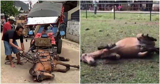 Akhirnya, si kuda hanya bisa tergeletak di jalanan. Video kekerasan ini sempat menuai kecaman dari warganet. Banyak yang menyayangkan perlakuan pemiliknya.