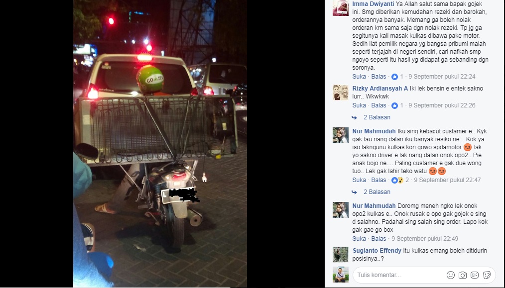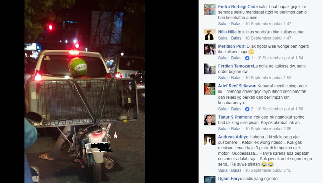 Kejadian ini diambil dari salah satu akun pengguna facebook yang menceritakan bahwa driver ojek online membawa kulkas...