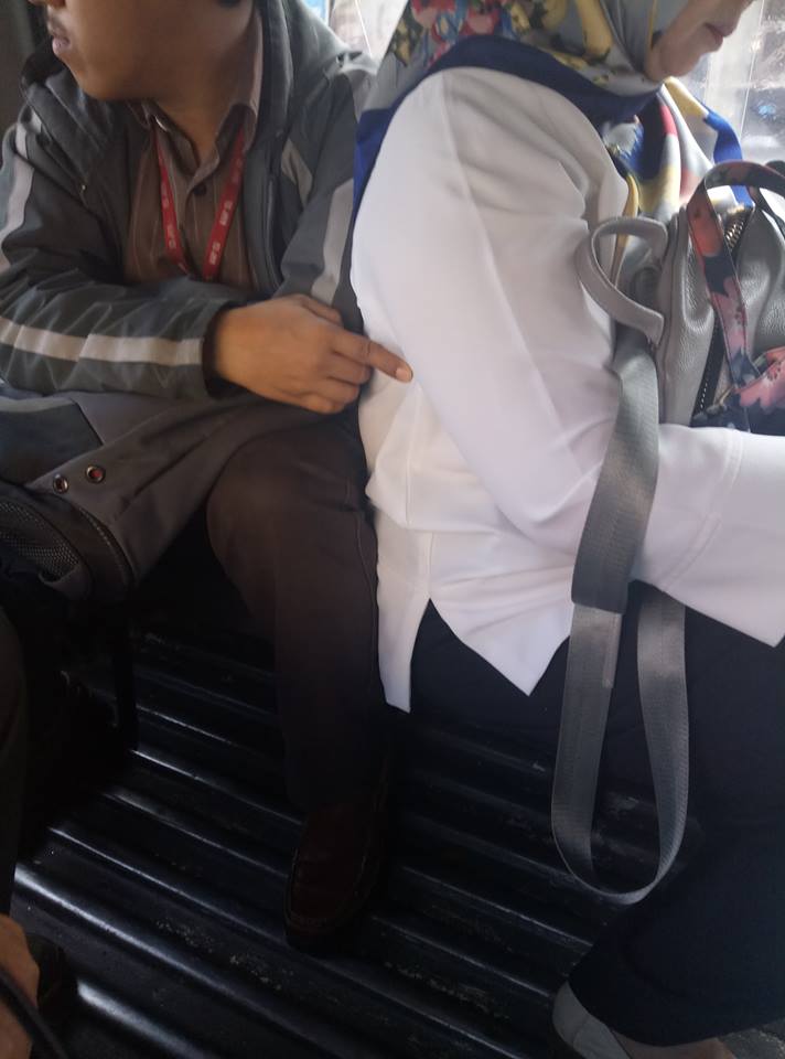 Nggak lama, gue merasa ada yang aneh, ini kenapa bapak-bapak deket amat ke ibu-ibu duduknya?