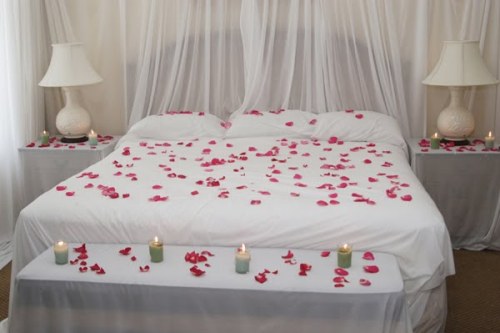 Oleh karena itu tidak jarang dekorasi kamar tidur pengantin menghadirkan bunga mawar, melati, maupun lilin.