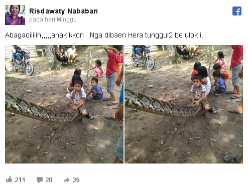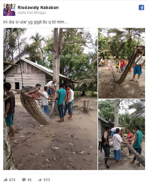 Kejadian ular yang mencoba memangsa korban diceritakan Risdawaty Nababan, adik korban di akun facebooknya.