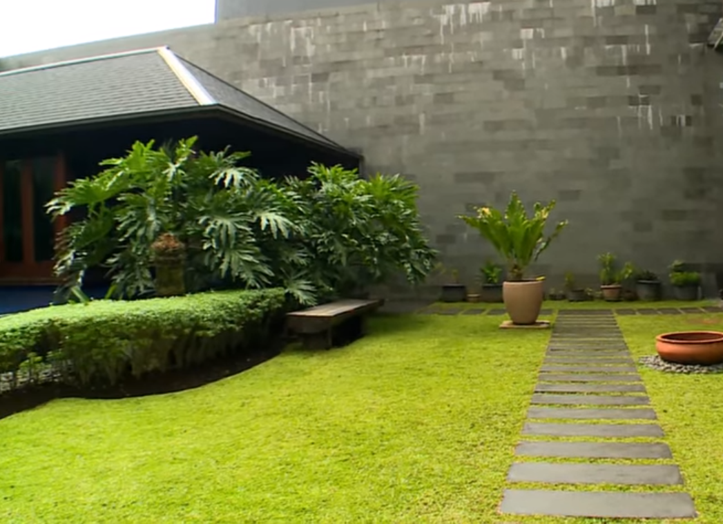 Pada bagian belakang rumah terdapat taman yang kurang lebih dengan luas 300m terdiri dari hijau-hijauan dan terdpat rumput dan tanaman.