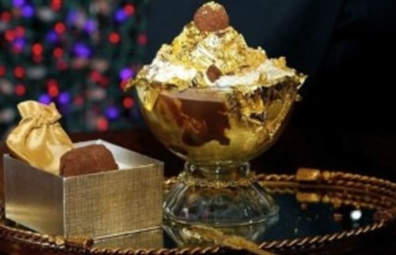 Memanjakan lidah dengan lembut dan manisnya es krim tentunya sudah biasa. Tapi gimana jika es krimnya seharga $25.000 atau setara 333.5 juta rupiah ! Bukan es krim sembarangan ini memang terbuat dari 28 Cacao yang berbeda serta didekor dengan emas yang bisa dimakan. Penyajiannyapun menggunakan gelas berkaki dengan emas tambahan lagi. Sebanyak 14 jenis Cacao dari 28 Cacao yang ada termasuk golongan cokelat termahal di dunia. Menyantap es krim ini juga akan mendapatkan kejutan berupa hadiah gelang emas 18 karat serta berlian 1 karat !