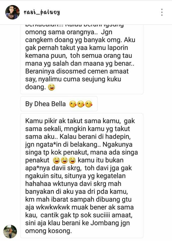 Ia pun tak segan memposting percakapan dengan wanita yang bernama Dhea Bella tersebut.