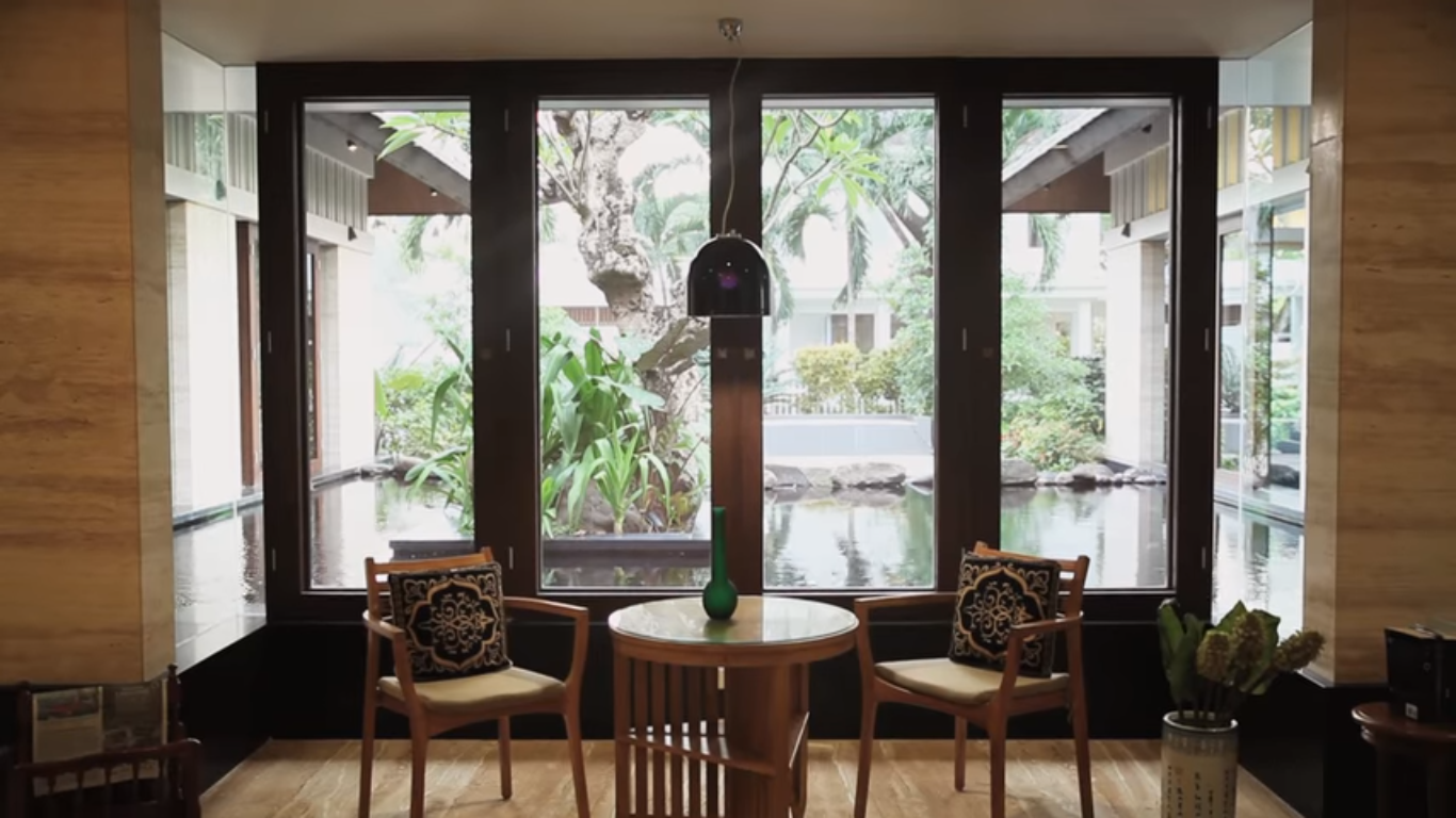 Tempat bersantai juga menyediakan meja dan kursi berukuran kecil, untuk jendela besar bisa dibuka dan memanfaatkan agar udara diluar bisa masuk pada ruangan. Belakang ruangan ada kolam ikan untuk menambah kesejukan agar tidak bosan.