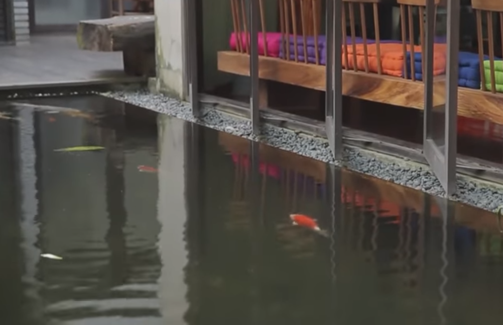 Sebaiknya bangun kolam ikan di dalam rumah dengan sebuah furniture yang memadai di sekitarnya.