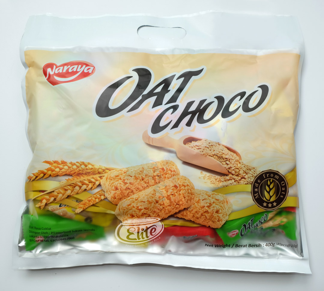 Produk ini merupakan salah satu camilan sehat yang dipercaya dapat menurunkan kolesterol, melancarkan sistem pencernaan, dan membantu mencegah kanker. Naraya Oat Choco diproduksi Fujian Fupaiyuan Foodstuff Corp Ltd yang diimpor PT Interfood Sukses Jasindo.