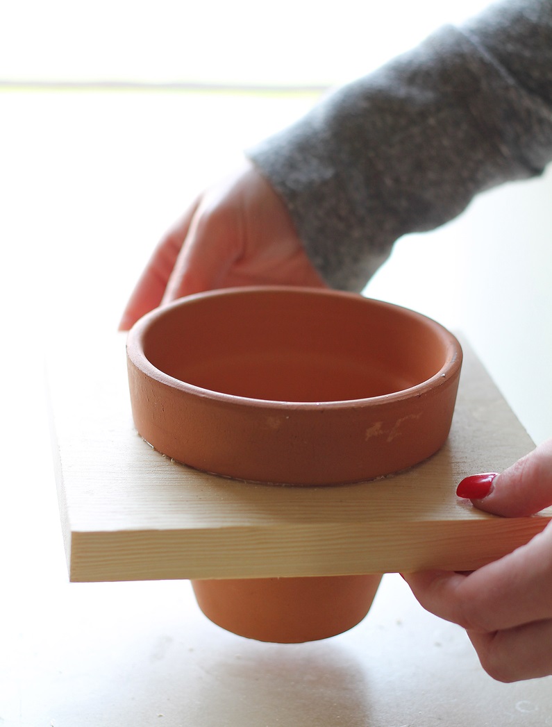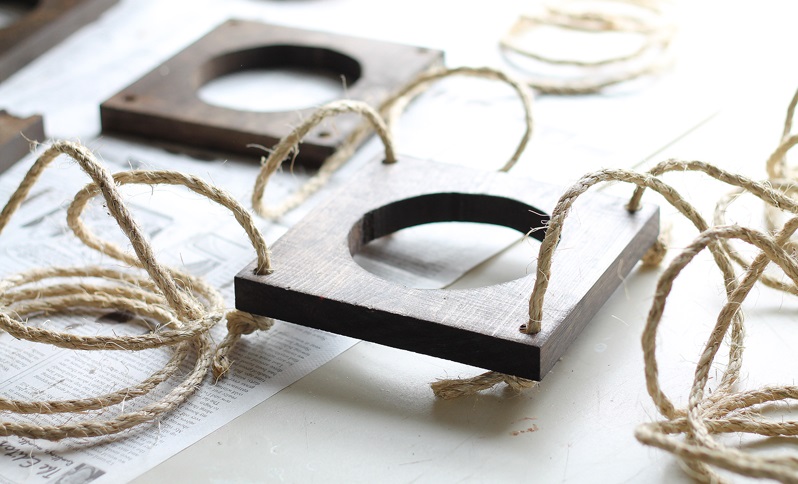 Plitur kayu yang telah di lubangi tadi supaya tampak lebih cantik. Dan jangan lupa melubangi bagian pojok kayu untuk tali agar dapat menggantung pot satu ke pot yang lain.