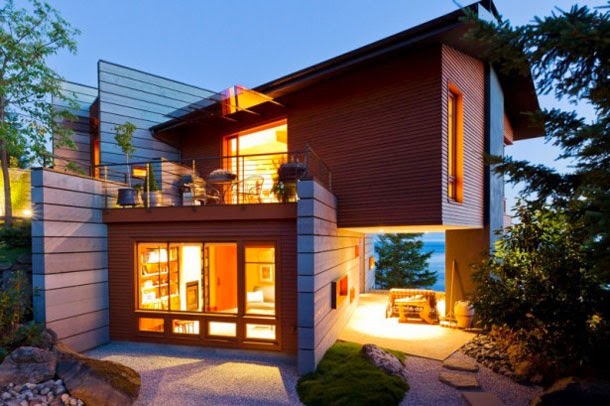 Desain rumah kecil tapi cantik. Terlihat hangat dengan bahan kayu untuk menghias dinding.