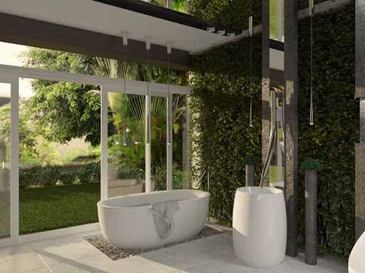 Dengan memberikan vegetasi dan ruang terbuka, sirkulasi udara tentu membuat aktivitas mandi yang anda lakukan lebih menyegarkan.