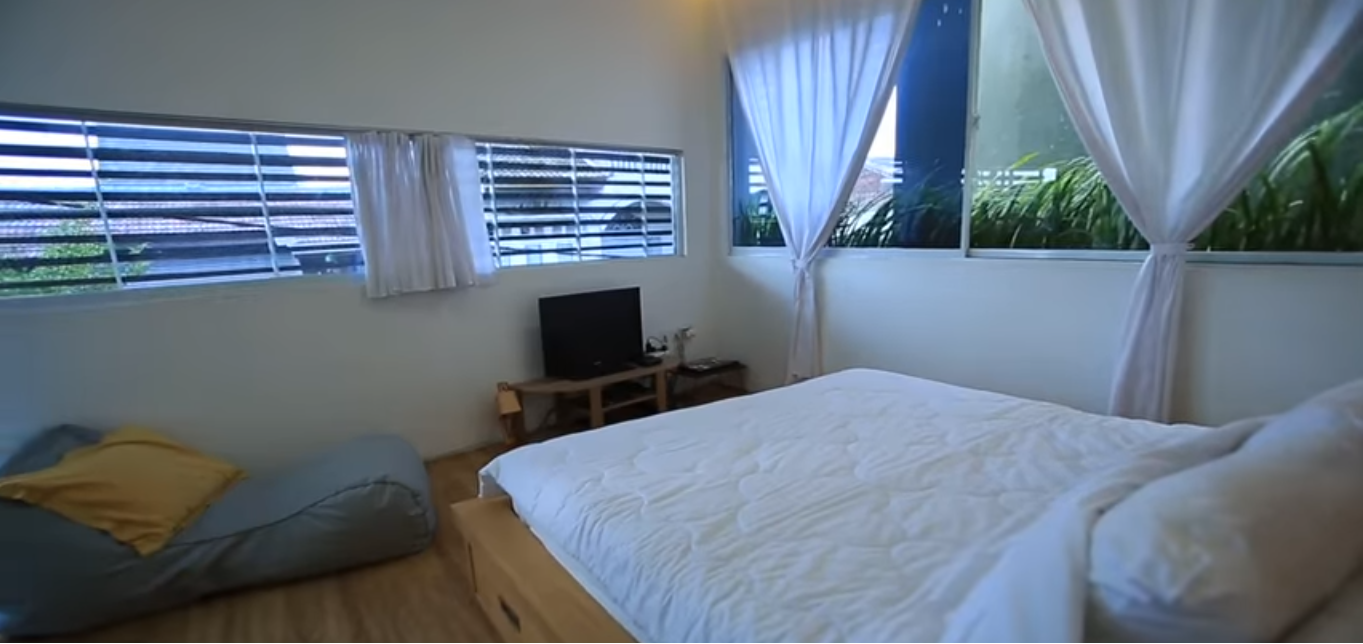 Dengan pembuatan jendela yang berada disamping memberikan pencahayaan dan udara agar bisa masuk pada kamar tidur dan memberikan kesan yang segar pada siang hari.