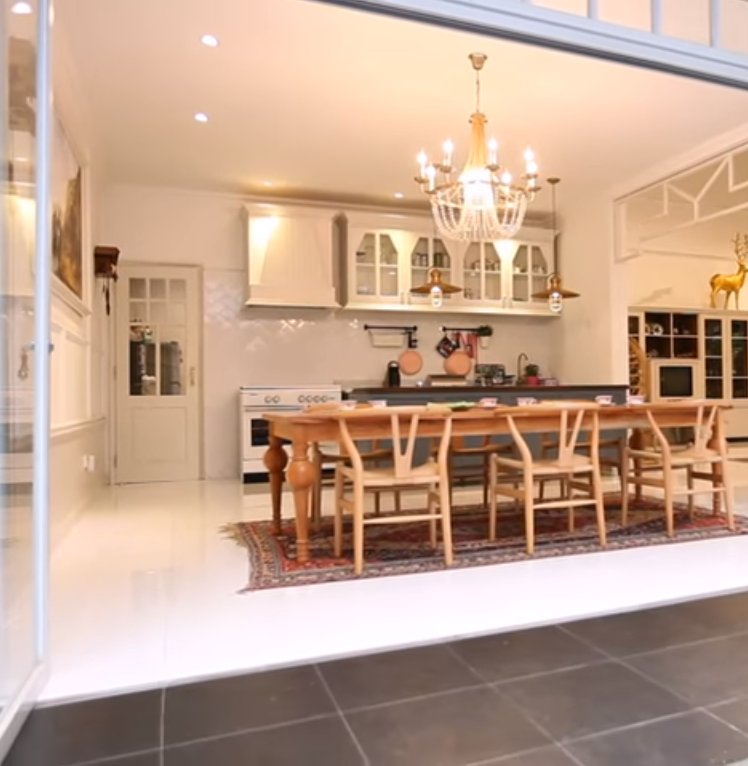 Hal itu terlihat dari warna putih yang mendominasi interior, mulai dari dinding juga perabotan yang ada di dalam ruang makan dan dapur.