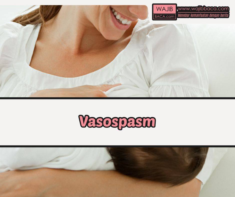 Kondisi ini jarang terjadi, namun beberapa ibu mengalaminya. Vasospasm adalah kondisi di mana put1ng sangat sensitif dengan udara dingin. Put1ng susu terlihat putih ketika bayi selesai menyusui kemudian bahkan berubah menjadi biru atau ungu dengan sakit seperti ditusuk dan menyengat. Jika Anda mengalami hal ini, jagalah agar kondisi Anda selalu hangat terutama sesudah atau sebelum menyusui.
