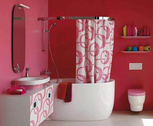 Menggunakan warna pink paling sering kita jumpai dalam sebuah kamar mandi. Dari dinding, lantai, wastafel dan toilet semuanya tersedia dengan pilihan warna pink.