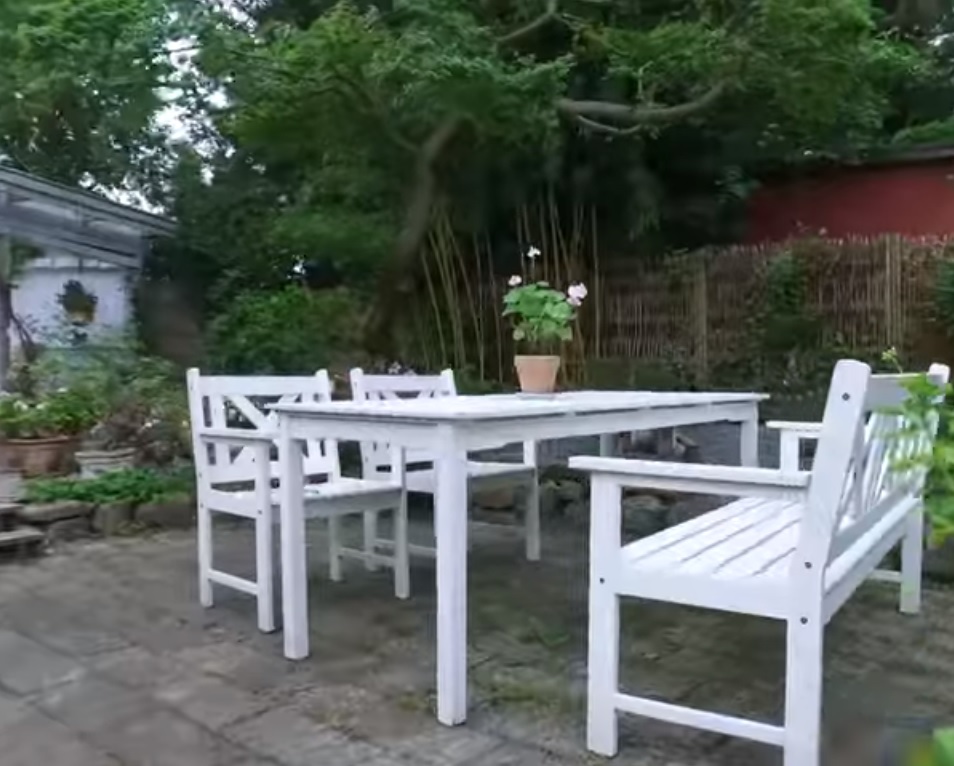 Pada area santai ini dilengkapi dengan meja dan kursi warna putih memberikan kesan bersih dan nyaman digunakan.