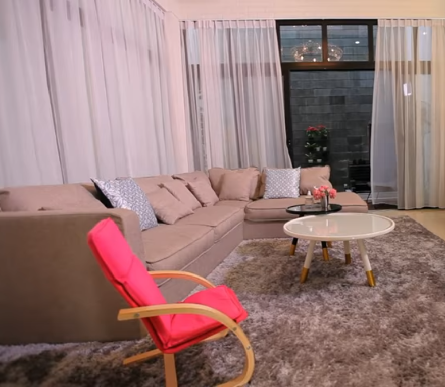 Karpet yang berbulu dan halus menjadi alas kaki disaat berada di ruang tamu. Pintu samping ruang tamu yang berbahan dari kaca bisa memberi keindahan jika pintu di buka, Anda akan menikmati halaman samping yang indah.