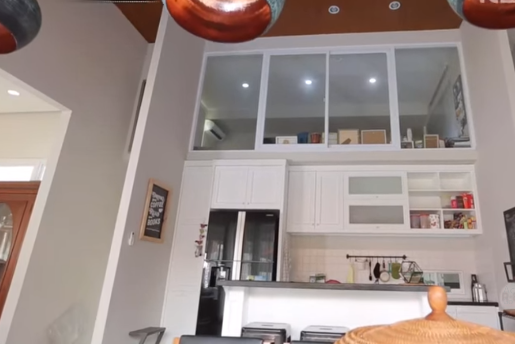 Lemari yang menyatu dengan kompor dan kulkas sangat membantu untuk luas rumah. Rumah yang tidak luas akan membuat binggung bagaimana menata ruang dengan rapi.